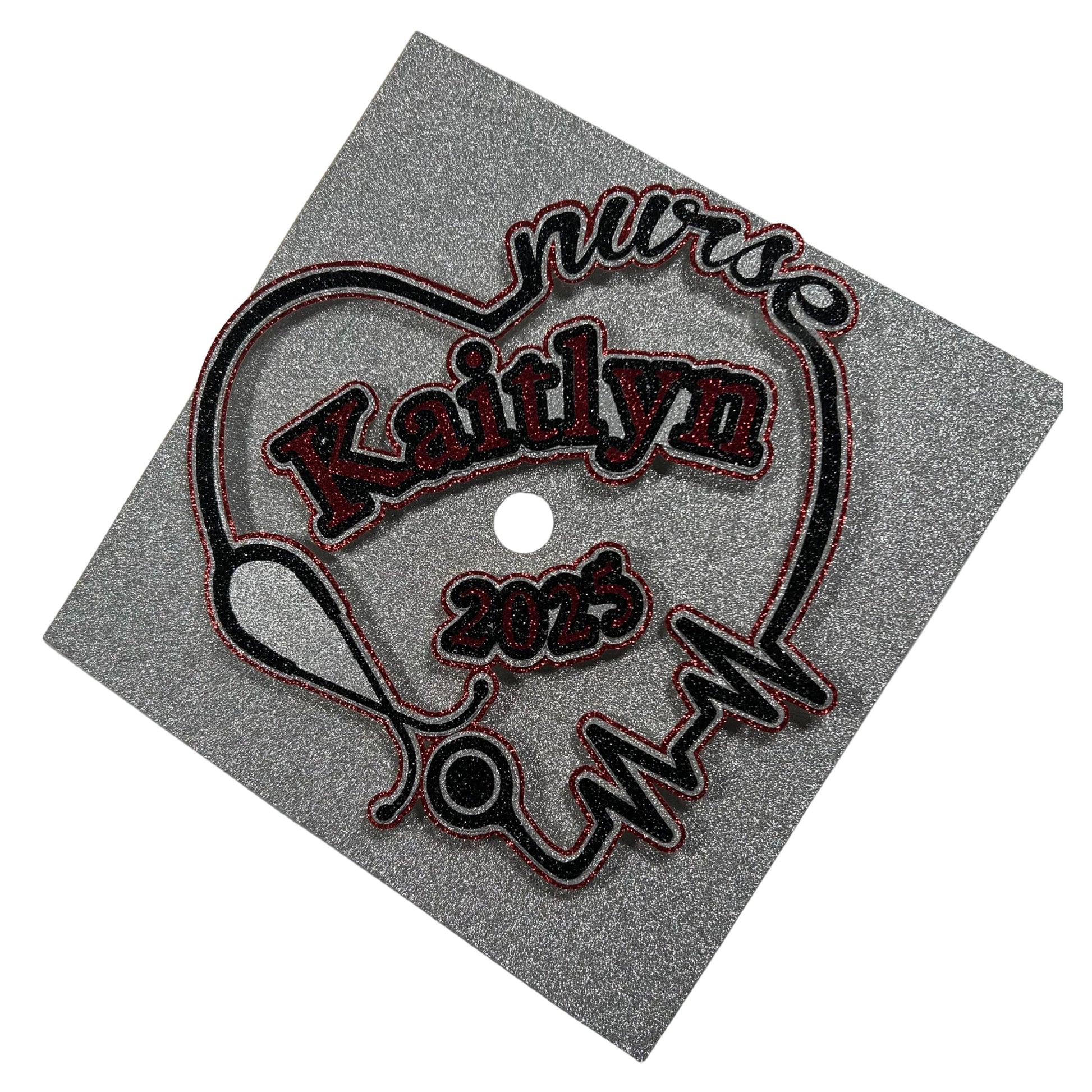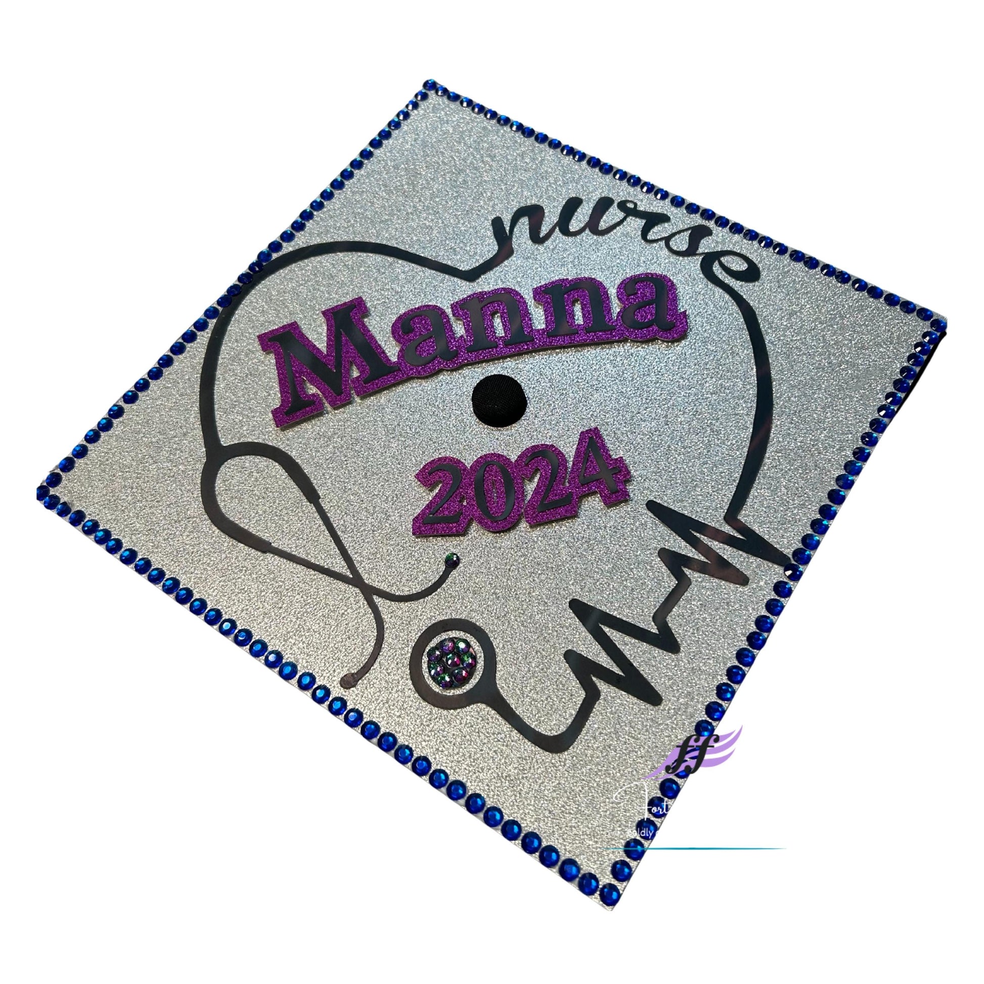 Personalized Nursing Graduate Mortarboard Cover: Glitter Cardstock & HTV