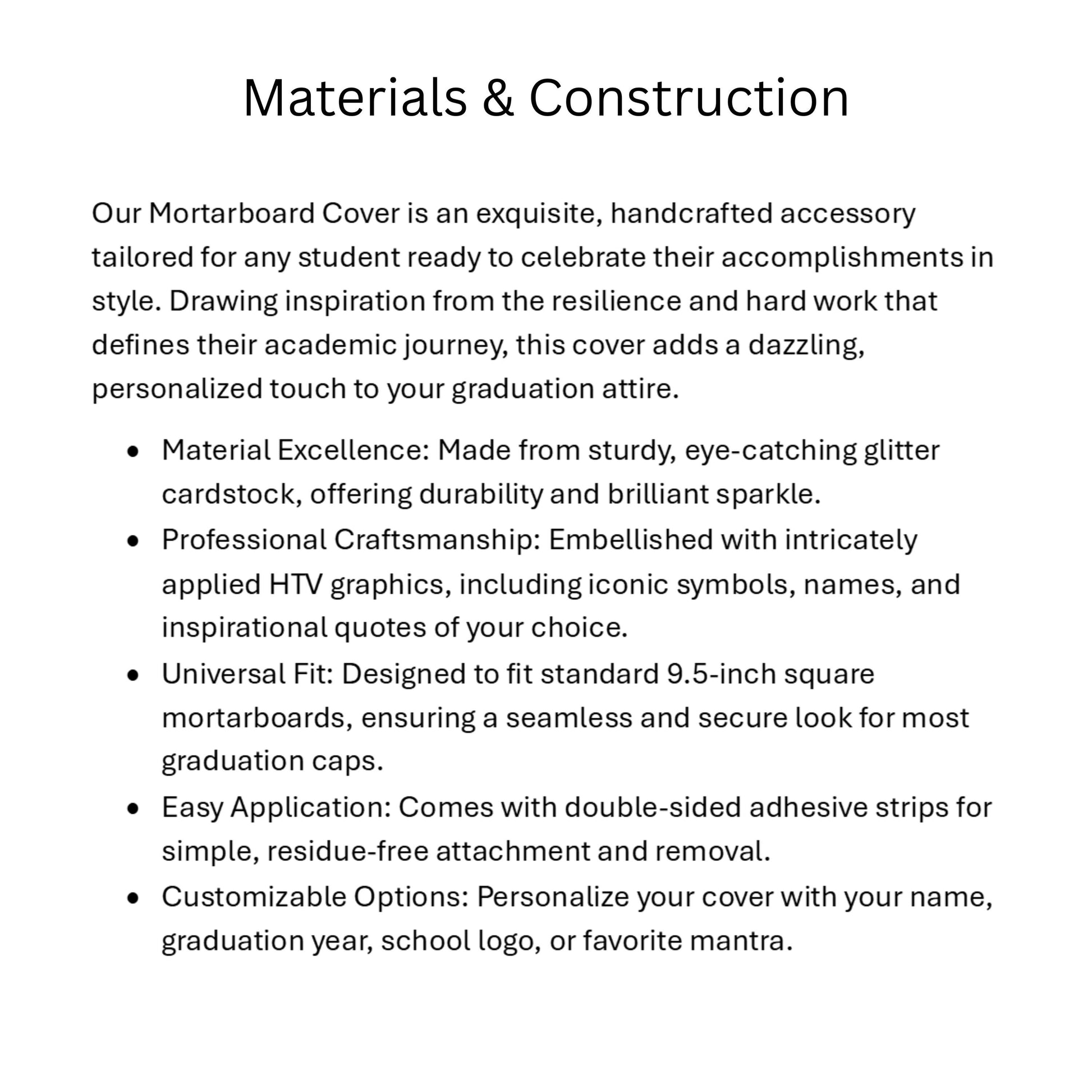- Customizable Options: Personalize your cover with your name, graduation year, school logo, or favorite mantra.
