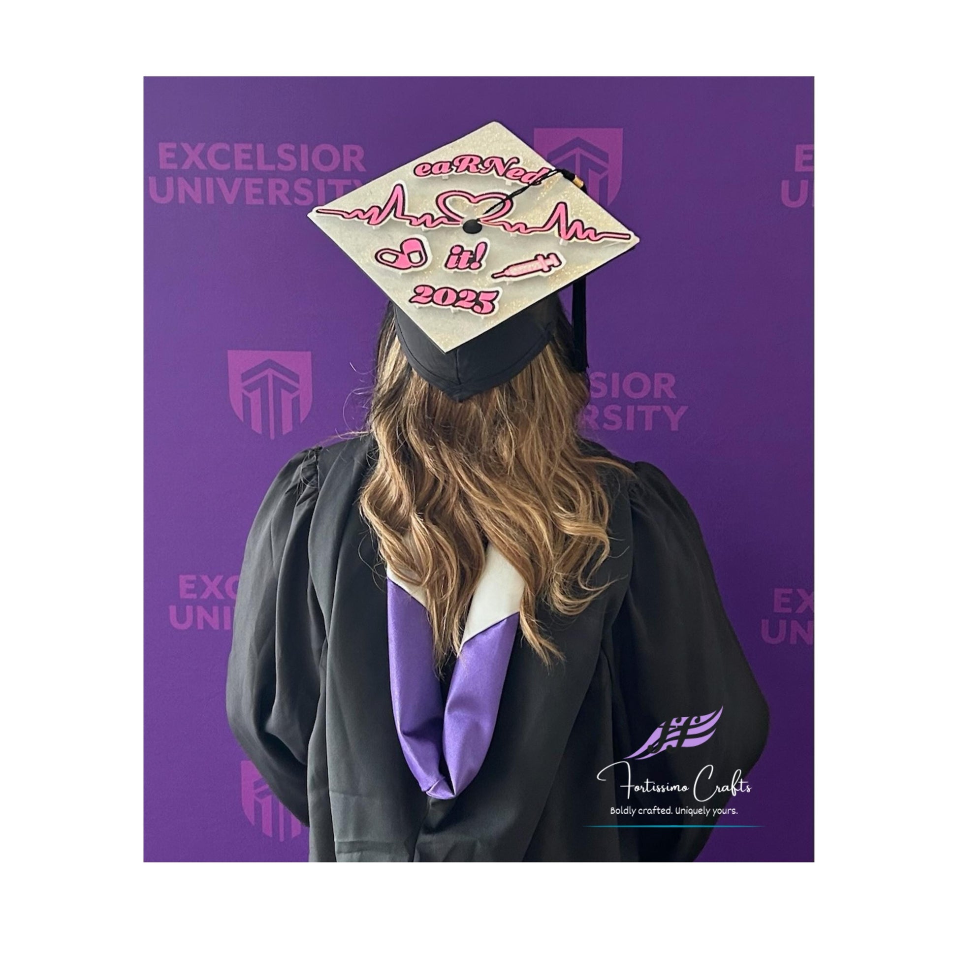 Every mortarboard cover is a celebration of the graduate’s unique journey. Our mortarboard is fully customizable to reflect each graduate’s experience and personality.