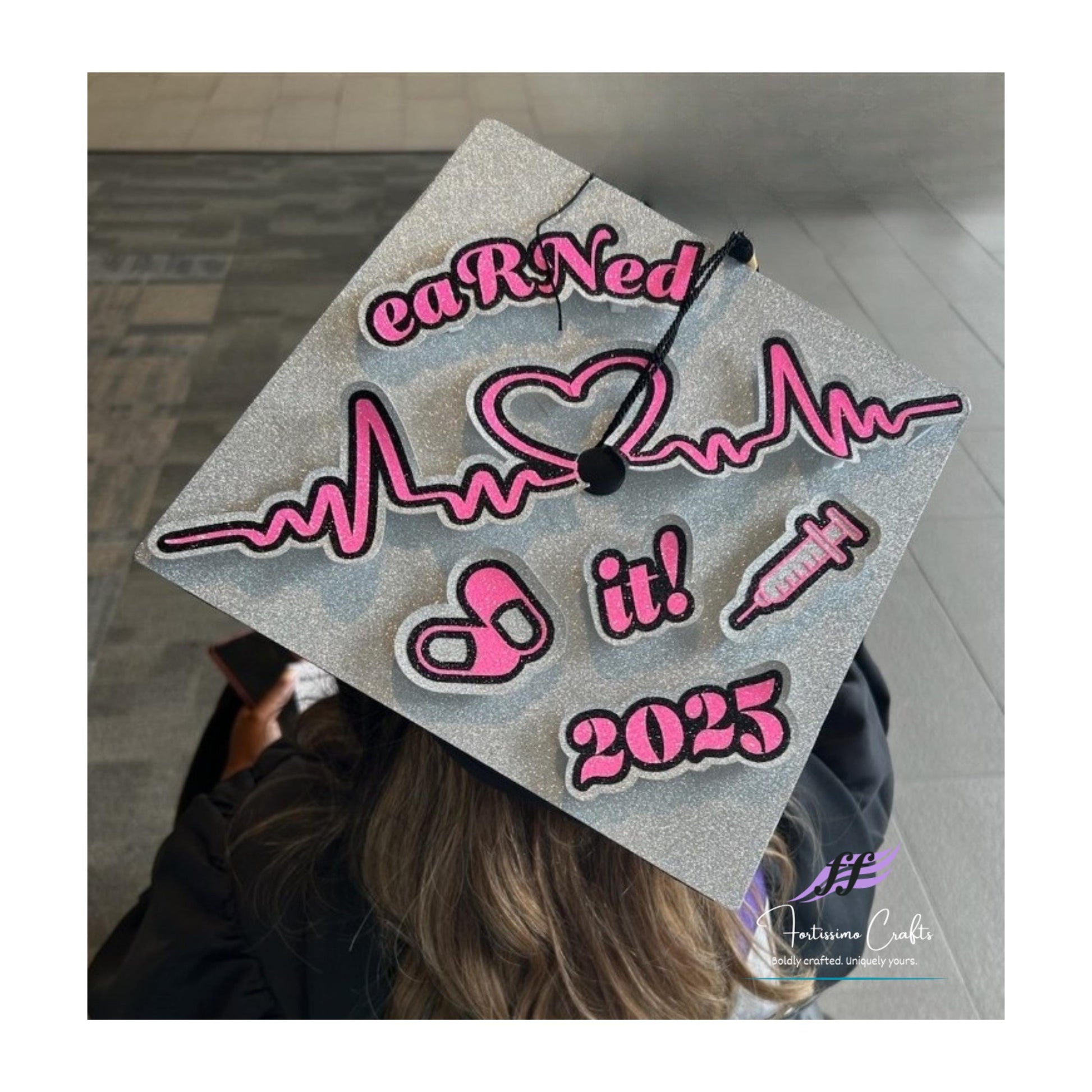 Graduation is a milestone to be cherished – a moment where years of dedication and late-night study sessions culminate in the toss of a mortarboard. This achievement resonates deeply, symbolizing academic success and the beginning of new adventures in the field of your choice. Our Mortarboard Cover, crafted with premium glitter cardstock and high-quality heat transfer vinyl (HTV), is designed to let your unique journey and spirit shine on your special day.