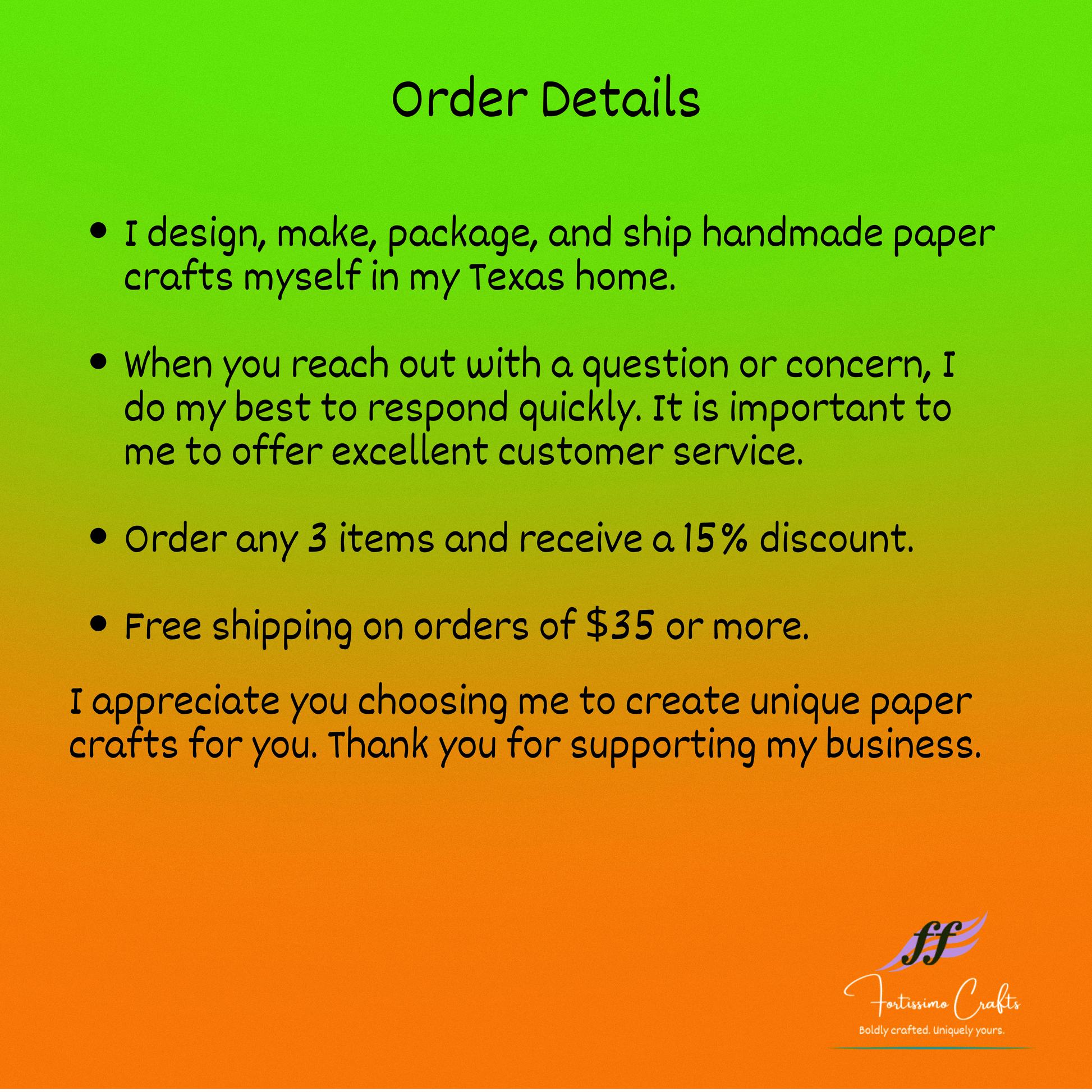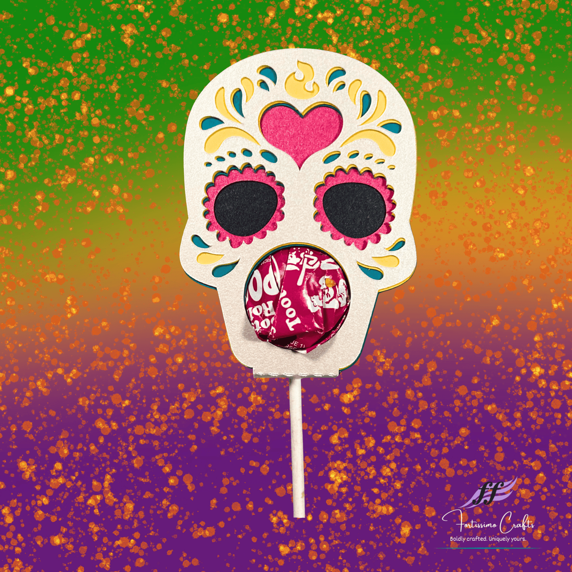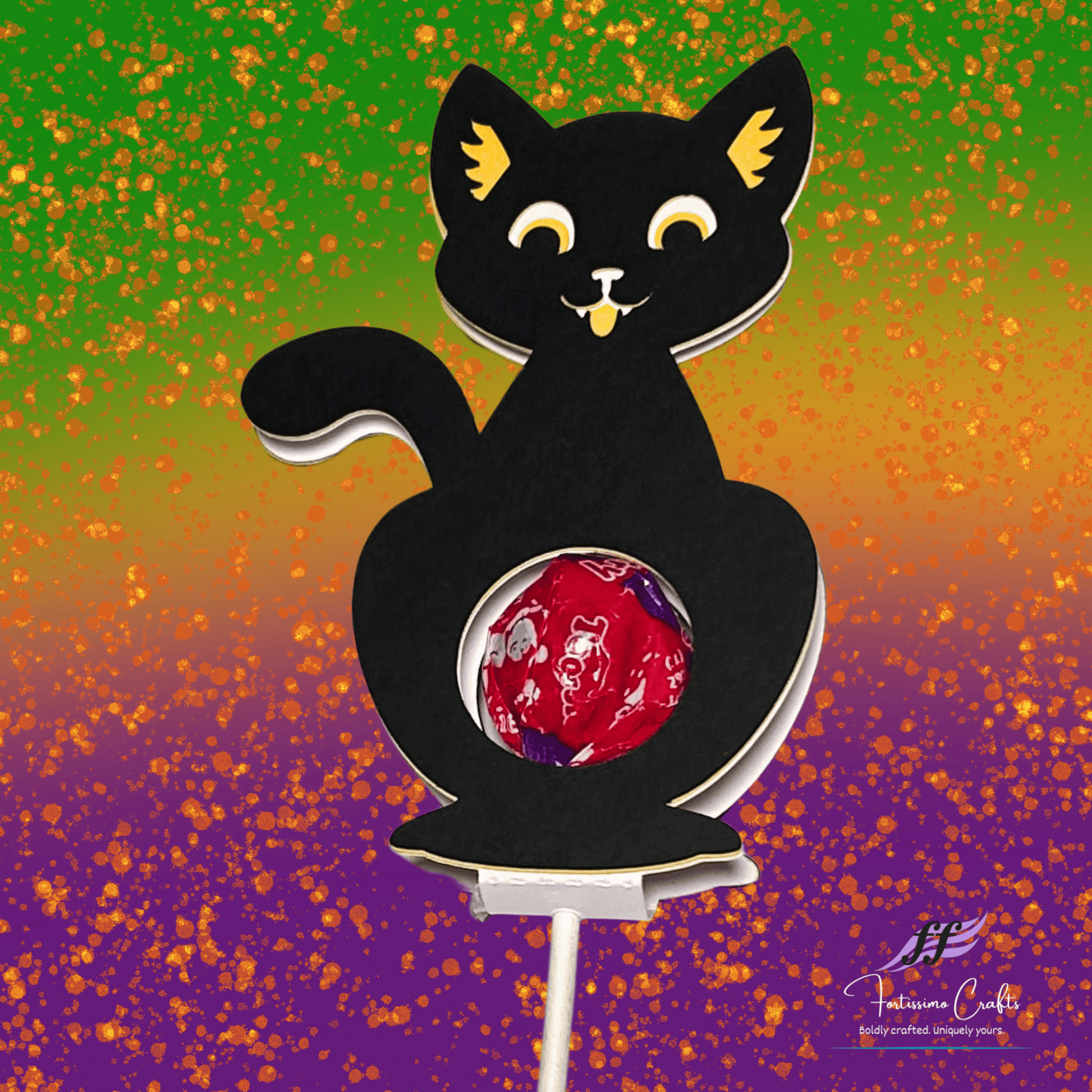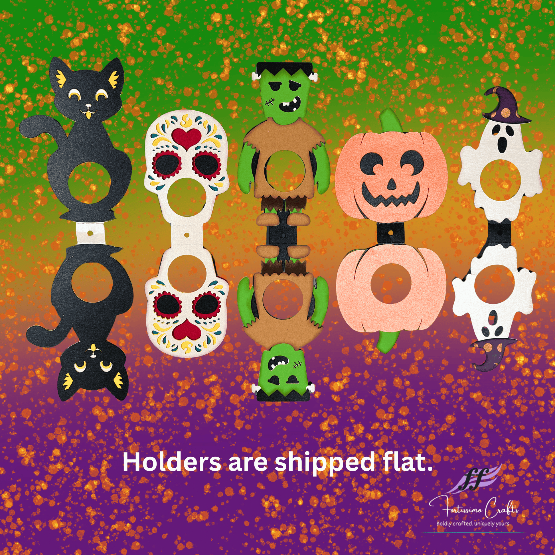 Imagine elevating the joy of Halloween by presenting lollipops in these handcrafted holders shaped as classic Halloween icons: a spooky ghost, a sly black cat, a quirky ogre, an enchanting jack-o’-lantern and a striking sugar skull. Each holder, meticulously assembled from layered premium cardstock and brought to life with inking techniques for added dimension, becomes a miniature work of art – a delightful gift for trick-or-treaters and partygoers alike.