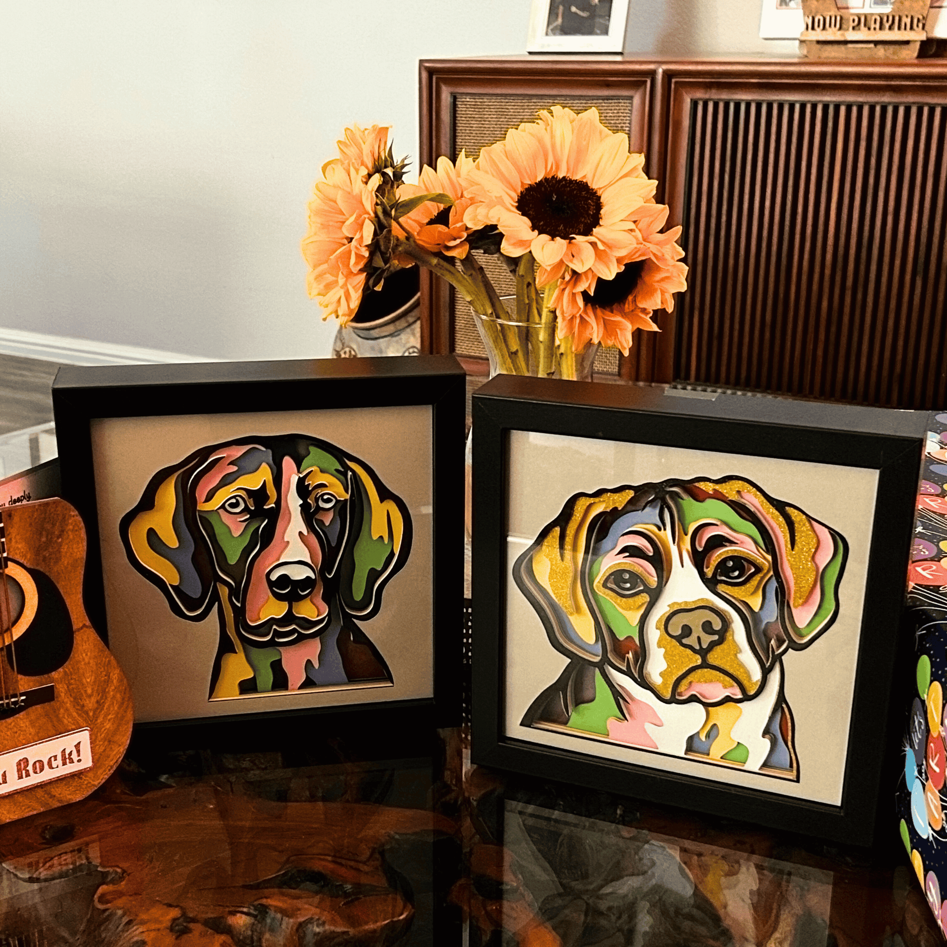- Original 3D layered design featuring your favorite pup’s face in colorful detail