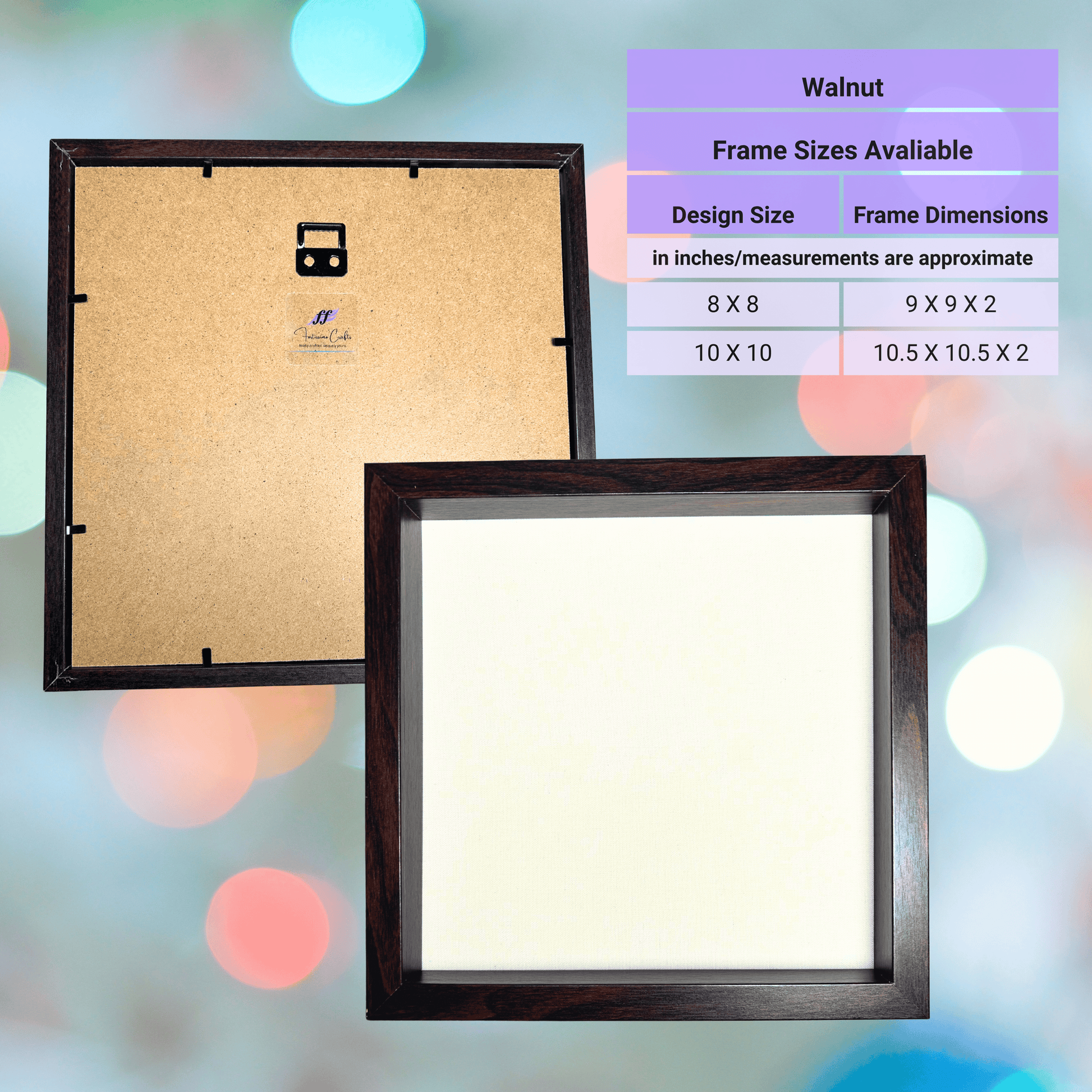 - 8.5” x 8.5” design; 10” x10”x2” framed