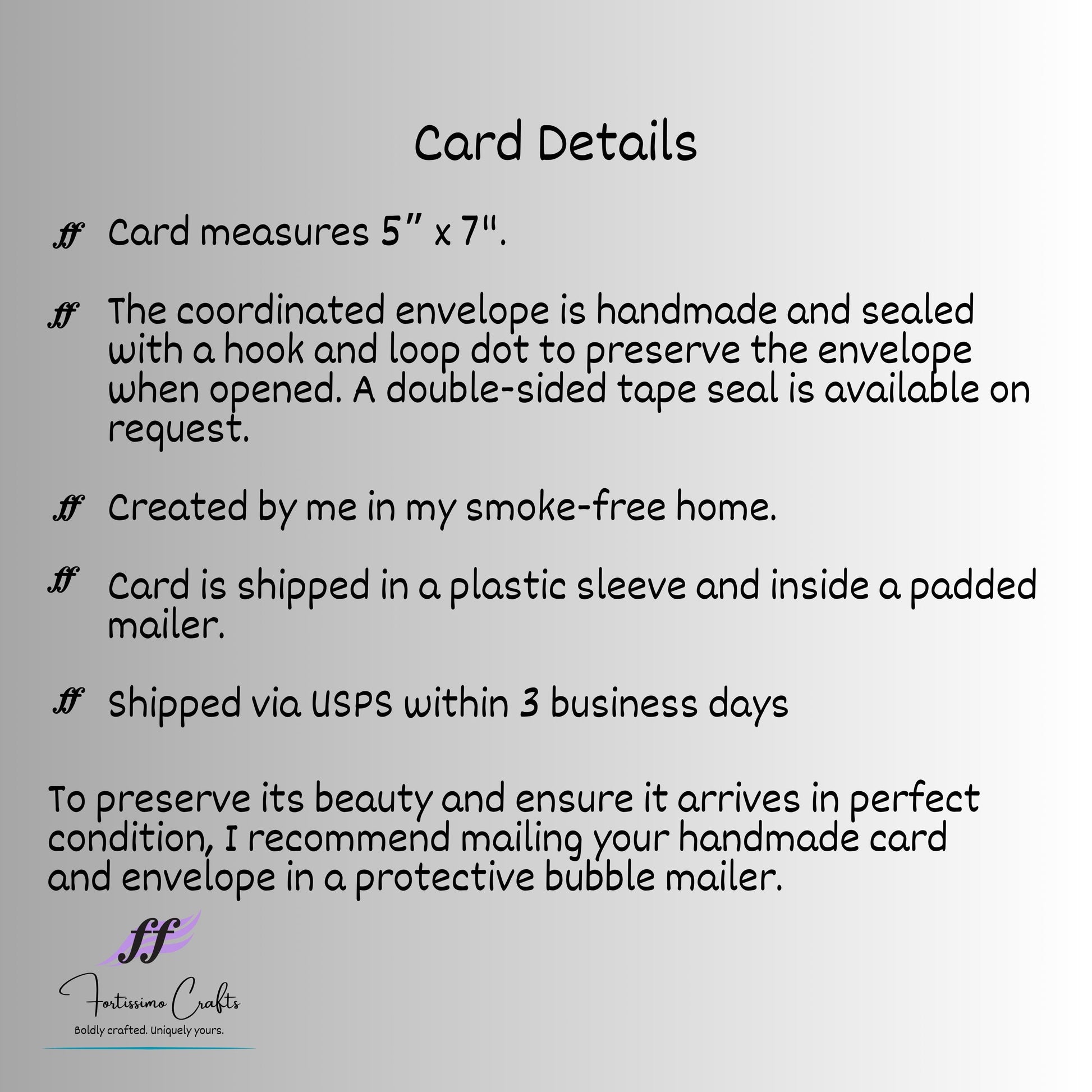 Because of its intricate, dimensional design and delicate embellishments, this special card deserves extra care. I recommend mailing it in a protective bubble mailer rather than the coordinating envelope to preserve its beauty and ensure it arrives in perfect condition.
