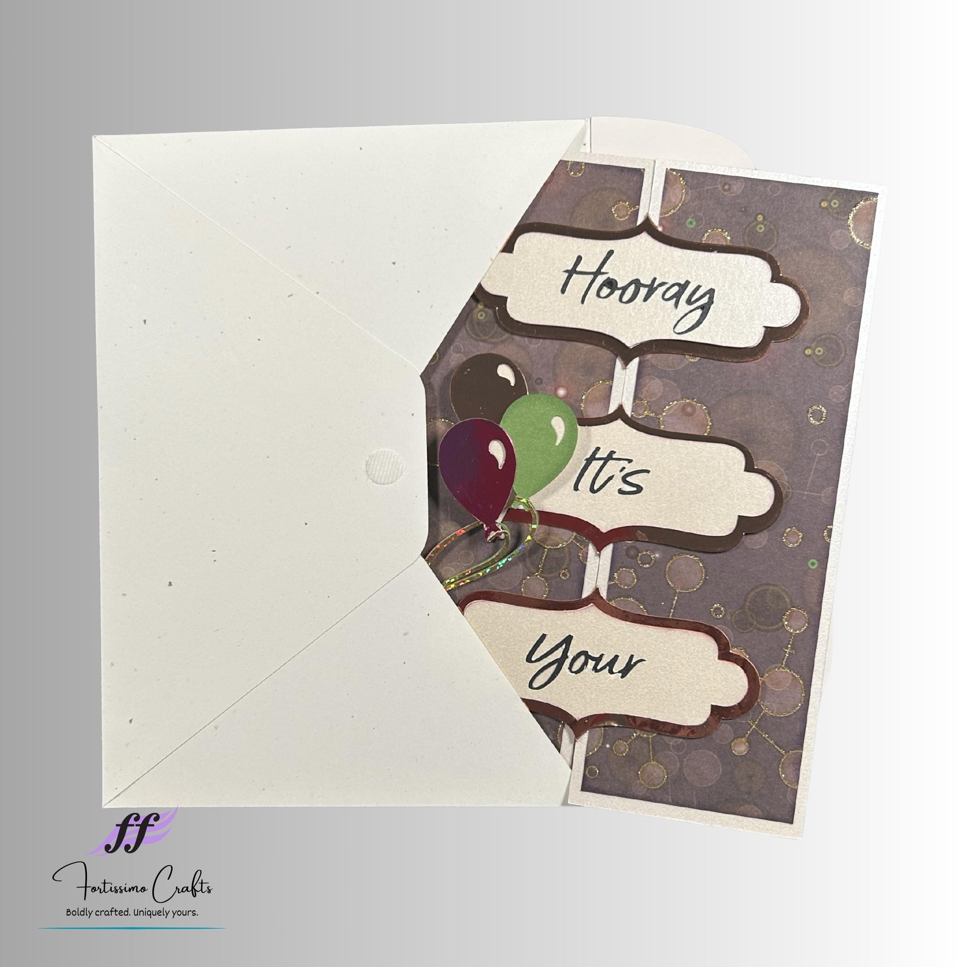 Celebrate that special day with this "Hooray! It’s Your Birthday" handmade card, a perfect gift for all ages. This unique card features playful balloons and comes in custom colors, making it a delightful addition to any birthday celebration. Crafted with love, this elegant greeting card showcases an eye-catching dimensional design that will surely impress your loved ones. Not only is it a beautiful way to express your wishes, but it also serves as a collectible keepsake for those memorable moments. Choose this handcrafted art piece for a truly special occasion card that will be cherished for years to come!